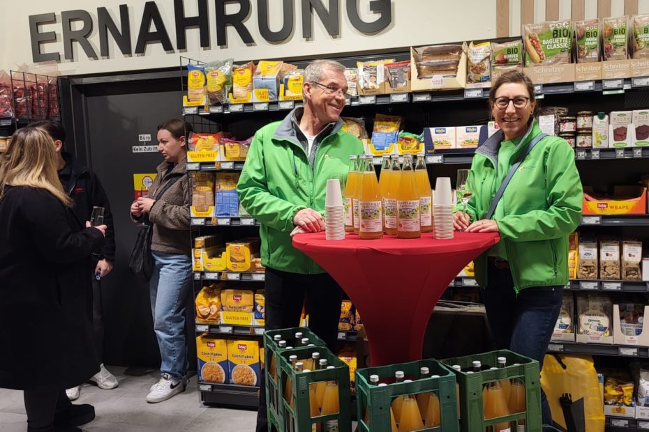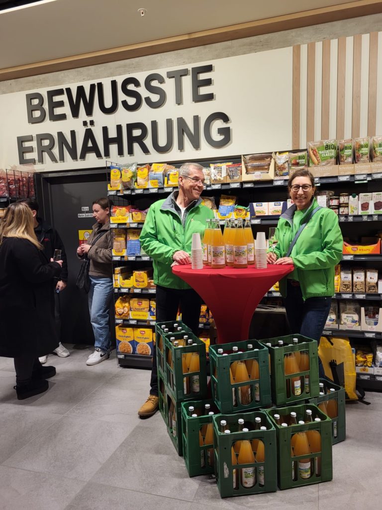 Anlässlich der Wiedereröffnung des Rewe-Marktes in der Bühlstraße – frisch umgebaut und richtig schick geworden – durften wir beim Pre-Opening dabei sein. Zwischen verschiedenen Essens- und Getränkeständen konnten wir unseren Apfelsaft vorstellen und darüber sprechen, wie er entsteht. Die Atmosphäre war besonders: ein Mix aus entspanntem Feiern und vielen in Fellbach bekannten Gesichtern.
