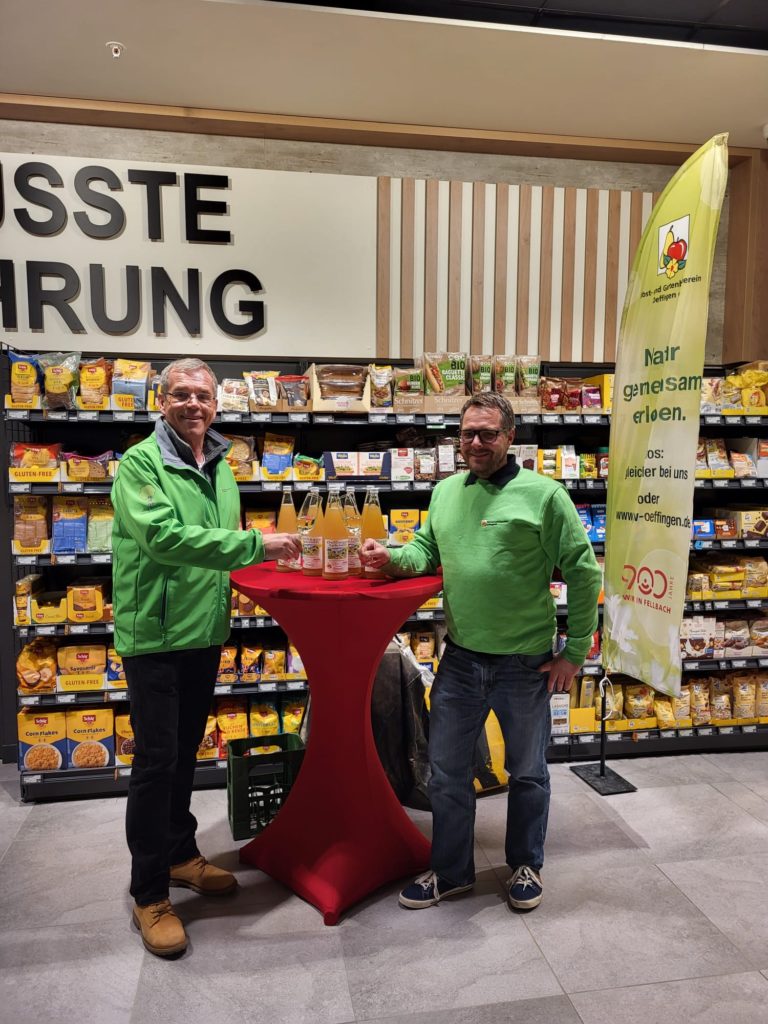 Sebastian Aupperle, Geschäftsführer von Rewe Aupperle, hat ein großes Herz für regionale Wertschöpfung – und für Streuobstwiesen. Diese Begeisterung führte zu einer einzigartigen Kooperation: Der OGV Oeffingen erntet die Äpfel von den örtlichen Streuobstwiesen, bei Bittenfelder Fruchtsäfte verarbeitet Jürgen Petershans sie zu frisch gepresstem Saft und übernimmt die Abfüllung, und in den Fellbacher Rewe-Märkten gibt es das Ergebnis schließlich exklusiv zu kaufen – unseren regionalen Apfelsaft.